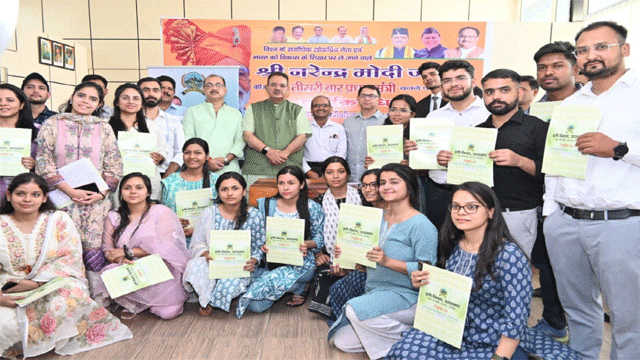 कृषि विभाग में कृषि सहायक अधिकारी के पद पर चयनित अभियार्थियों को नियुक्ति पत्र वितरित करते कृषि मंत्री गणेश जोशी।