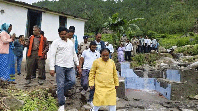 पौड़ी गढ़वाल: कैबिनेट मंत्री डॉ. धन सिंह रावत ने जनपद पौड़ी के अंतर्गत विकासखंड थलीसैंण क्षेत्र के जैंती डांग व जैंती चक आपदाग्रस्त क्षेत्र का निरीक्षण किया। इस दौरान उन्होंने प्रभावित परिवारों से मुलाकात कर आपदा प्रभावितों को चैक वितरित किये। सोमवार को मंत्री ने थलीसैंण के चौथान क्षेत्र पहुंचकर आपदाग्रस्त क्षेत्र का निरीक्षण करते हुए संबंधित विभाग के अधिकारियों को क्षतिग्रस्त क्षेत्रों का कार्य जल्द प्रारंभ करने के निर्देश दिये।