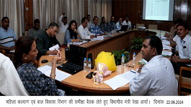 देहरादून: महिला सशक्तीकरण एवं बाल विकास मंत्री रेखा आर्या ने विधान सभा स्थित सभागार कक्ष में विभागीय अधिकारियों के साथ महिला सशक्तीकरण एवं बाल विकास विभाग की समीक्षा बैठक ली।मंत्री ने पूर्व में दिये गये निर्देशों के पालन के संबंध में विभागीय अधिकारियों के साथ विस्तृत चर्चा की एवं उन्होंने वीडियो कान्फ्रेन्सिंग के माध्यम से सम्मिलित हुए सभी जिला कार्यक्रम अधिकारियों से विभाग द्वारा संचालित योजनाओं की जनपदवार जानकारी प्राप्त की तथा आवश्यक दिशा-निर्देश दिये।