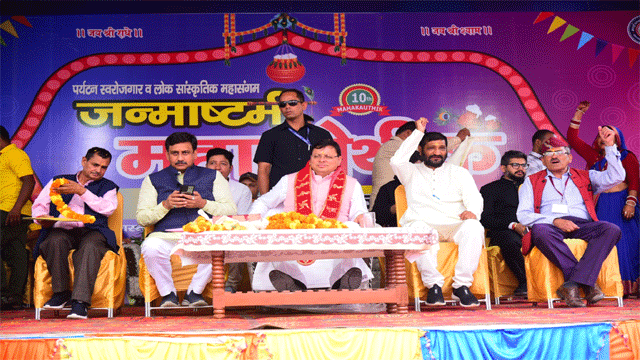 गैरसैंण: मुख्यमंत्री श्री पुष्कर सिंह धामी ने आज चमोली जनपद के गैरसैंण विकासखण्ड स्थित माईथान, खनसर में आयोजित जन्माष्टमी महाकौथिग कार्यक्रम में प्रतिभाग किया। इस अवसर पर मुख्यमंत्री ने माईथान क्षेत्र के महिला एवं युवक मंगल दलों को 25-25 हजार रु. देने की घोषणा की। मुख्यमंत्री ने रामगंगा नदी में आवश्यक बाढ़ सुरक्षात्मक कार्य किए जाने, मालकोट में पुल या बेली ब्रिज बनाने, माईथान में जिला सहकारी बैंक की शाखा खोलने, शिशु मंदिर माईथान को सीएसआर के माध्यम से धनराशि उपलब्ध कराने एवं विनायकधार-कस्बीनगर मोटरमार्ग के जल्द निर्माण की घोषणा की।