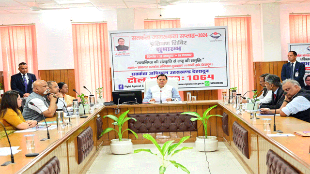 देहरादून: मुख्यमंत्री पुष्कर सिंह धामी ने सतर्कता अधिष्ठान निदेशालय द्वारा ‘सत्यनिष्ठा की संस्कृति से राष्ट्र की समृद्धि’ पर आयोजित सतर्कता जागरूकता सप्ताह एवं प्रशिक्षण शिविर का शुभारंभ किया।